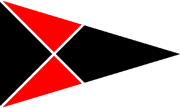 A pennant quarterly divided by a white saltire, black-red-red-black.