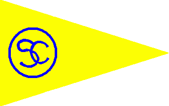 The club has a motor yacht department and a sailing department. The pennant is blue parted by a red lozenge issuant from fly. In the canton is a shield with the Oldenburg arms, i.e. yellow two bars red.