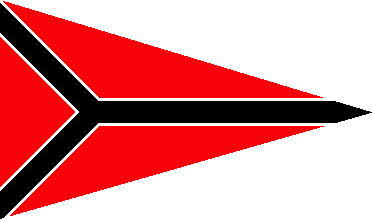 It is a black pennant divided by a red chevron pointing to the fly and continued by a red horizontal line.
