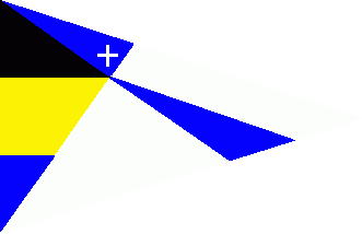 Ducal cavalry flag: It is a triangular pennant, mainly white but with blue, black and yellow pieces of cloth. The white cross of the alliance of Huguenots is placed into the upper blue piece of cloth.