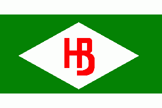 The company was located in Hamburg. It is a white over green over white horizontal triband with ratio approx 1:3:1 and a red capitals "HB" in a white lozenge in the centre, the "B" being clearly higher.