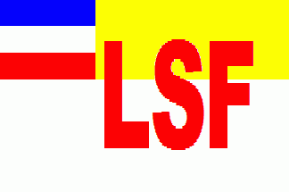 The flag (see left image above) was white, divided by a red centred cross, in the canton was a black inscription "LB"(1st line) "DG" (2nd line). As J. A. Suckau there is the same flag, but initials are dotted (see right image above).