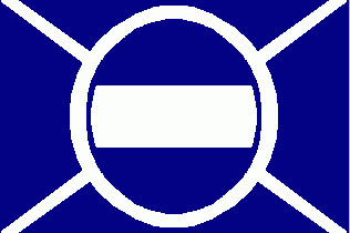 The white flag is divided by a blue centred cross. In the centre of the flag is a white diamond containing a smaller white diamond fimbriated red. Both have the lower point in common.