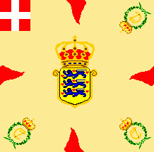 The king´s colour was a square version of the Danish national flag or Dannebrog, i.e. red parted by a centred white cross.