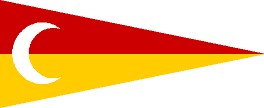 so-1576 - Placed in southern Somalia, near the place where today lies Mogadiscio. A triangular flag, dark red over dark yellow, with a white crescent at the hoist, vertically centered.