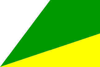 Flag: Rectangular flag, with proportions 2:3, made of two triangles with a common vertex in lower hoist and the two other in the midpoint of the upper edge of the flag and in mid fly, the triangle at hoist white and the lower triangle yellow, all over a green quadrilateral.