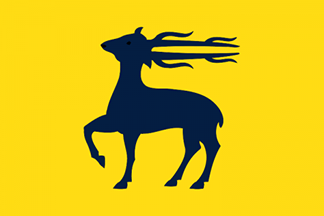 The new flag was approved on May 14, 2018, and was published in the Diari Oficial de la Generalitat Catalana nº 7708, dated September 10, 2018: Yellow flag, with the dark blue deer of the shield, 3/4 of the height of the cloth, in the center; proportions 2:3.