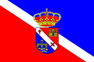 Coat of arms: A bend argent charged with a Cross of Saint James in chief dexter and a Cross of Saint Andrew in base sinister surronded dexter azure a two-arched bridge or over waves azure and argent surmounted by a tower or masoned sable and sinister gules a castle or porta and windows azure masoned sable. The shield surmounted by a Royal crown closed.