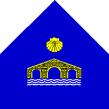 Flag: Castilian flag, with proportions 1:1, aguada en bajo, with its upper edges in white and its field azure. In the middle a three-arched bridge or over waves argent ensigned with a scallop or.