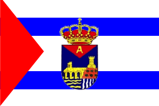 Coat of arms: Azure a bridge or ensigned by an arch of the same over weaves azure and or surrounded by mount of plants ensigned by a castle or over vertical waves azure and argent. Grafted in chief, Gules a letter "A" or. The shield surmounted by a Royal crown closed.