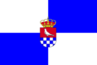 Flag: Quartered, white at upper hoist and lower fly, the other quarters, blue, charged in the center with the municipal coat of arms in full colors.