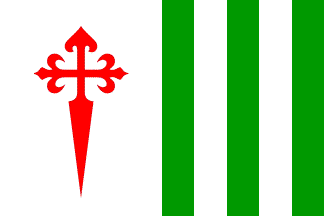 Flag: Rectangular, in proportions 2:3, made of six vertical stripes, in proportions 1/2 the stripe at hoist and 1/10 the other ones, at hoist white with a red Cross of St. James, another three green and two white stripes.