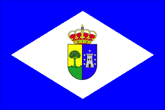 Flag: In proportions 2:3. Blue (international system CMYK: Cyan 90, Magenta 15, Yellow 0, Black 0). Charged with a white rhomb with the points distant from the respective flag's edge of 1/10 of the respective dimension of the flag. In the center is placed the crowned coat of arms of the municipality.