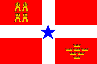 in Murcia designed a red flag with a white cross, four yellow castles
