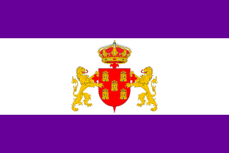 Coat of arms: Gules five castles or port and windows azure per saltire, the shield placed over a Cross of Saint James, supported by a lion proper and surmounted with a Royal Spanish crown.