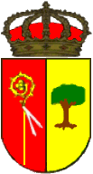 Coat of arms: Per pale, 1. Gules a crozier or with a sash argent, 2. Or an almácigo vert. The shield surmounted by a Royal crown closed.