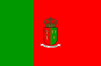 The flag of La Matanza de Acentejo shown in the Santa Cruz de Tenerife Military Museum is vertically divided green-red (1:2) with the coat of arms is in the middle of the flag.