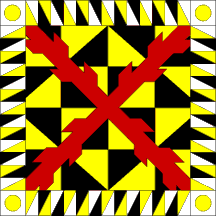 Keywords: infantry | cross: burgundy | cross: saltire (red) | saltire (red) | chequy (yellow-black) | bordure: zigzag |