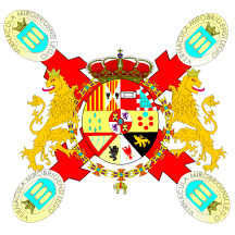 This is the coronela flag [king's colour] of the Ciudad Rodrigo Provintial Militia Regiment, presented 1814-1815. The colour is currently deposited in the City Hall of Ciudad Rodrigo (Salamanca province).