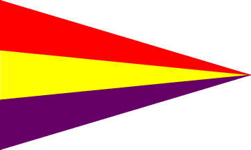 Triangular pennant in the 1931-1939 national colours, with both red, yellow and purple stripes tapering to the end. The (slant) top and bottom sides of the flag measure 7/4 of the hoist.