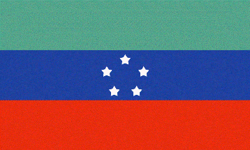 The Ethiopian government's website originally showed the flag of Sidama as being a green-blue-red horizontal tricolour, with five 5-pointed stars arranged in a circle in the center of the middle blue stripe.  No details of the symbolism of the design or colours is provided.