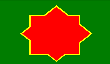 The last part of the movie "Indiana Jones and the Last Crusade" occurs in a (I guess) fictitious arabic State called Hatay (but see also the page on Hatay, Turkey). This flag appears many times.