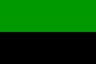 Dune frequently mentions the "Atreides green and black banner". I can't help but to think this banner is a simple bicolour. And, since Herbert was American, undoubtedly making it horizontal was natural for him. So, this is what I pictured in my mind as this banner of Atreides.