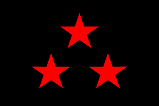 Black with 3 (1+2) red 5-pointed stars, more or less centered. Although in the French site I bumped into, the stars were rounded – not pointy as in Pierre Gay's image – and they were smaller too.