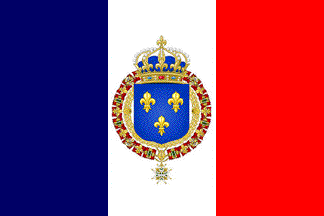 The Orleanist Royal flag, offered for sale (La Couronne blog), is the French Tricolor (as recognized by King Louis-Philippe, the ancestor of the Orleanist pretender), charged in the middle with the Royal arms.