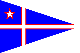 The burgee of CNA is a triangular blue flag with a white cross fimbriated red. A white star fimbriated red is placed in the canton.