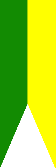 During the introducing scenes of the film, the streets of the town are decorated with vertical, forked banners, vertically divided green-yellow.