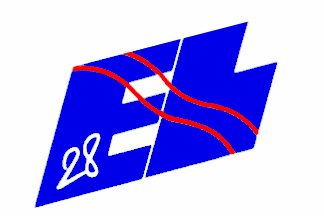 The logo, adopted in 1999, is made of the full name of the departement, with "et" (and) symbolized by an ampersand (&) made of wheat ears. A part of the Beauce region, used to be called "the wheat loft of France" (le grenier à blé de la France is located in Eure-et-Loir.The General Council used before 1999 a logo made of the two blue letters "EL" with two red wavy lines and a little white "28" in the "E". The letters and the lines are the symbols of the rivers that gave their names to the departement.