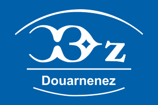 The current flag of Douarnenez is white with logo (photo, 2014; photo, 2016; photo, 2019).