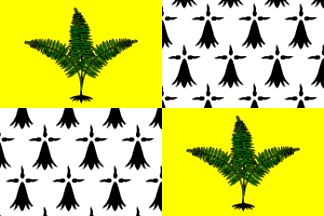 The Flag of Fougères is quartered, 1 and 4 yellow with three fern fronds (leaves), 2 and 3 semy of ermine spots. According to P. Rault (Les drapeaux bretons de 1188 à nos jours [rau98]), this flag was used in Fougères in the late 1960s.