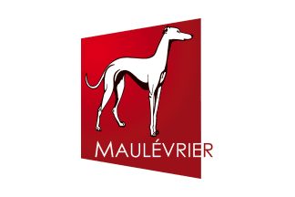 The logo is based on a spurious etymology related to "greyhound" (lévrier). Most probably, Maulévrier come from Latin "malum leporarium" / "malus levrium" / "malus leporium" / "malus levrarius". The combination of "mau" ("bad") and "leporarium" ("hare park / warren") would result in "bad hare park" or "bad warren".