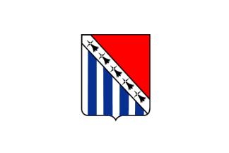 The former flag of Theix (photo, 2011) between 2011 and 2016 was white with logo.