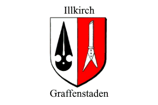 photo) was white with the municipal coat of arms, "Per pale, 1. Argent a coulter sable in pale, 2. Gules a fisher's gaff argent in pale" and the name of the two components of the municipality above (Illkirch) and below (Graffenstaden) it.
