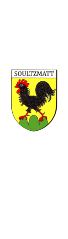 The flag of Soultzmatt (photo), used as a forked vertical banner, is white with the municipal coat of arms, "Argent a rooster sable crested gules on a base vert".