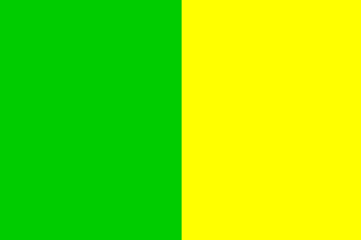 The flag of Étrembières, as hoisted on the bridge over the Arve, is vertically divided green-yellow.