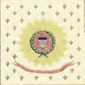 E. Liris explains that the main element featured on the color is the union of the three orders, the attributes of Nobility, Clergy and the Third Estate being connected by a trophy to form fasces. In the center, the Nobility sword is surmounted by a liberty cap. Vieilh de Varenne comments on the fragility of the union: "Would unfortunately discord start again, we would be worst then we were". The motto, however, is much more optimistic.