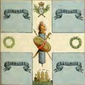 inscribed in yellow with the motto "LIBERTE FIDELITE" (French: Liberty