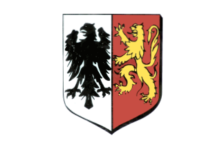 The flag of Neauphle-le-Château (photo) is white with the municipal coat of arms, "Per pale, 1. Argent an eagle sable, 2. Gules a lion or".