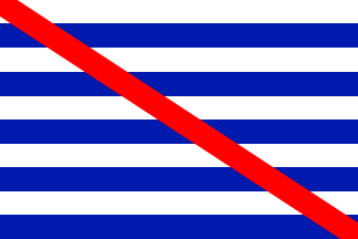 The former flag of Parthenay is horizontally divided white-blue with the lesser coat of arms shifted to the hoist.