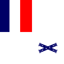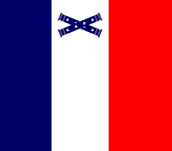 The personal flag of Marshal Alphonse Juin (photo, Infantry Museum) is white with the French national flag in the canton (like the modern Marshal's flag), the batons in the middle of the white stripe of the canton, and seven blue stars, placed 1-2-1-2-1, in the fly side.