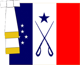 Tricolore in canton and two blue sabres crossed per saltire in the
