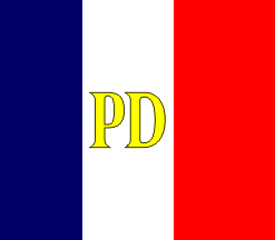 The personal flag of Paul Deschanel is shown in the 1923 Supplement of the Album des pavillons, guidons, flammes de toutes les puissances maritimes [f9r23], as a French Tricolore with the monogram of the President, composed of the letters "P D" in gold, in the center of the white stripe. A smaller, black and white image published in Emblèmes et Pavillons [eep], No. 1, confirms the design of the flag.