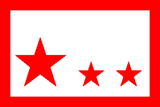 Bouteiller's house flag is shown in the Yearbook of the Central Committee of France Shipowners (1922) as white with a red border and a big red star at hoist, flanked on its right by two smaller red stars placed side by side.