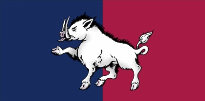 One further curiosity is a commercially available design, described as the Gloucestershire flag, which is neither the winner of the flag competition nor a banner of the council's arms. The porcine theme of the design features a rather fierce looking Gloucester "Old Spot" boar. It is interesting to note that the late William Crampton, whose design proposal this is, was the founder of the Flag Institute, which now manages the UK Flag registry. (source)