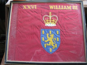 Company badges 1-20 were granted by Charles II in 1661, 21-24 by Queen Anne in 1713, and 25-30 by Queen Victoria in 1855. The so-called Queen's Crown in each flag signifies that these all date