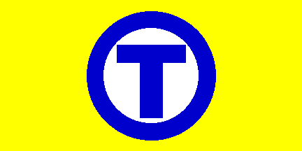 Yellow, a white disc with a wide blue border (making an "O") and a blue "T" inside.